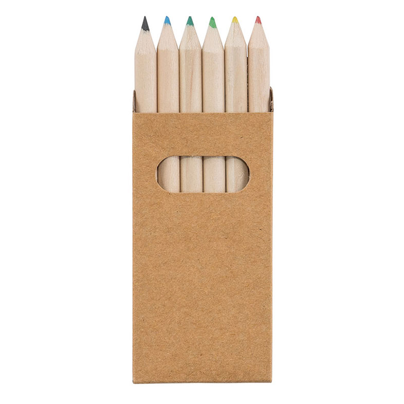 Caja de cartón con 6 lápices de colores mini para pintar.